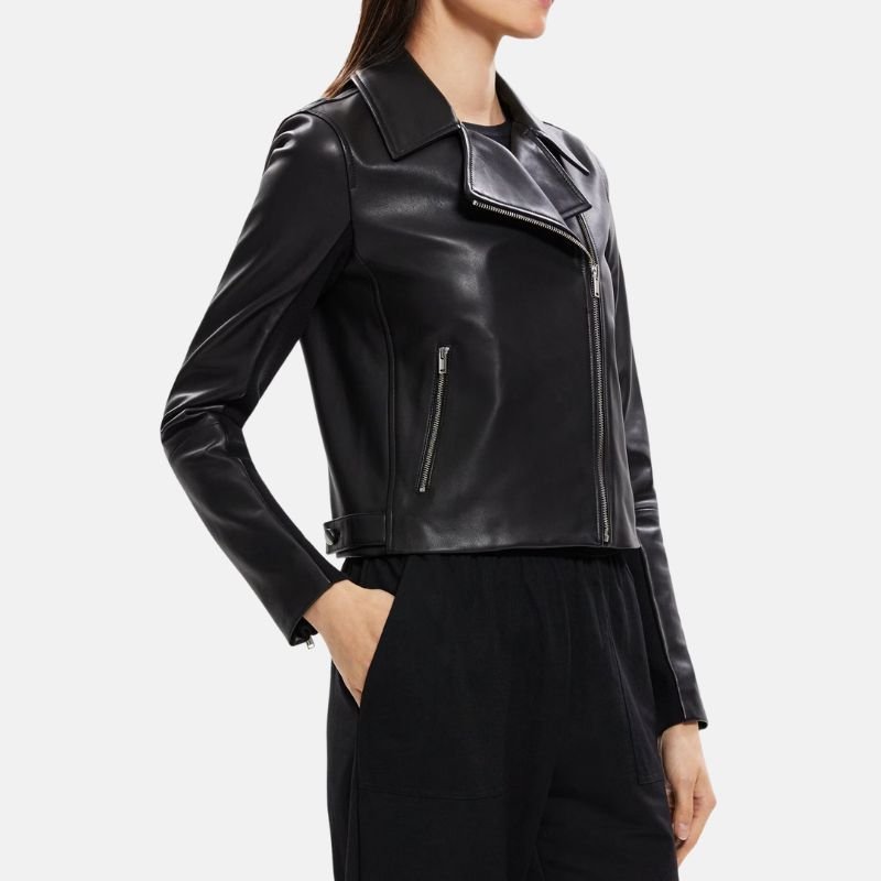 Also, this article integrates a more refined rebellious spirit. The hardware has a brushed finish, revealing its quality craftsmanship, and the stitching has been done with care. Consequently, the jacket transcends outerwear and becomes a definitive statement. Enhancing its value, the jacket will age with the wearer, the leather developing a rich patina revealing the wearer’s personal styles. The care instructions are minimal and reasonable: a gentle wipe, proper hanging, and allowing the leather to age. The jacket becomes the focal point of an outfit, whether paired with dark fitted jeans and boots or a dress and heeled shoes. It provides an anchor of confidence with a timeless attitude. Select the black leather moto jacket to incorporate quality, contemporary design, and classic style.