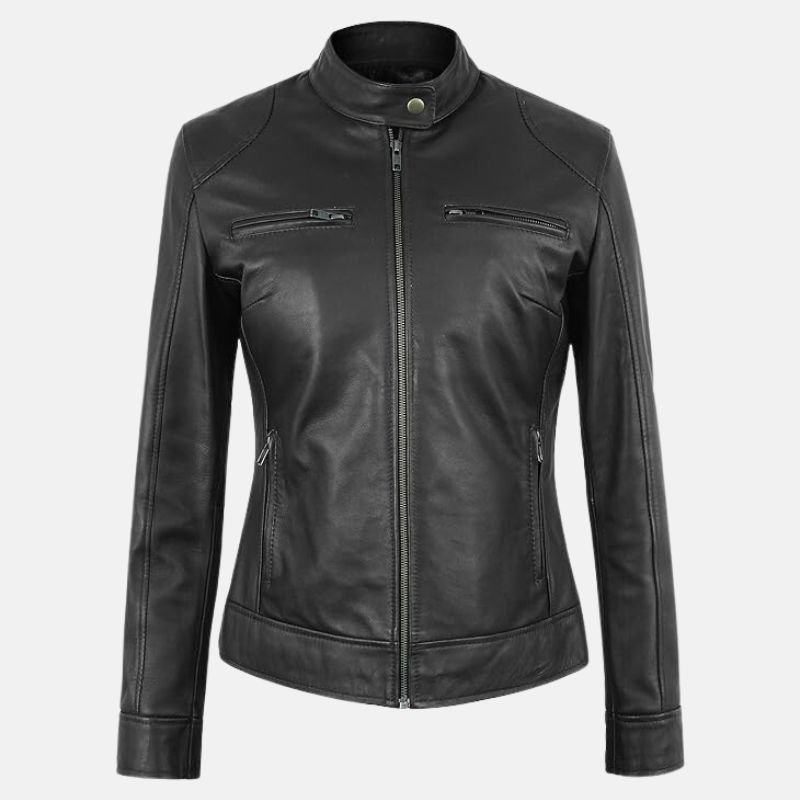 Ava Black Leather Biker Jacket For Women.