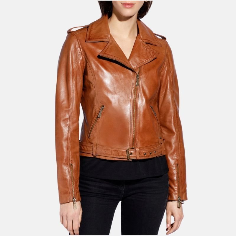 Edgy & Durable Brown Women’s Leather Motorcycle Jacket with Adjustable Fit