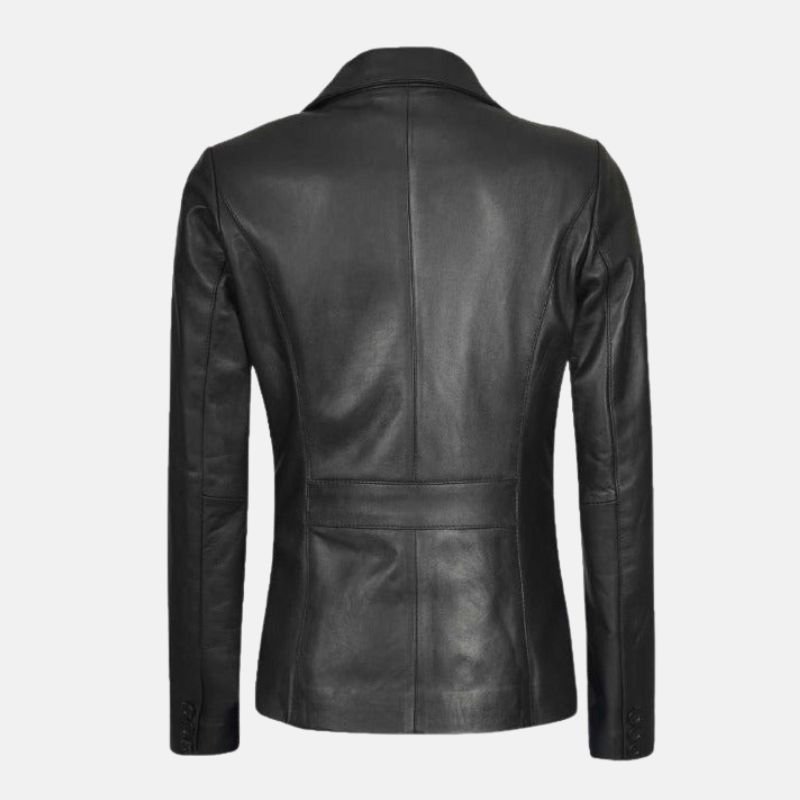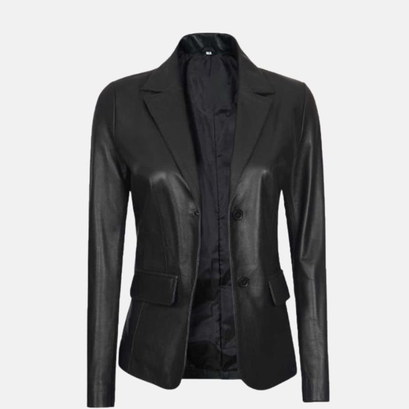 This Chloe Women’s Two Button Black Leather Blazer embodies modern classic style and timeless elegance. Made from high-quality lambskin leather, it is smooth and soft; moreover, the inner soft viscose lining increases comfort for longer usage. The notch lapel and classic two-button closure offer various versatility and polished looks for both fitted dresses and tailored trousers. The cuffs and softer structural tailoring provide a modern and unique approach. The extra and inner pockets, together with the open hems, add purposeful construction as modern functionality, and the expansive black leather material offers easy matching with any outfit. Effortlessly, you can go from weekdays spent in the office to weekends spent in casual dinner outings with friends.