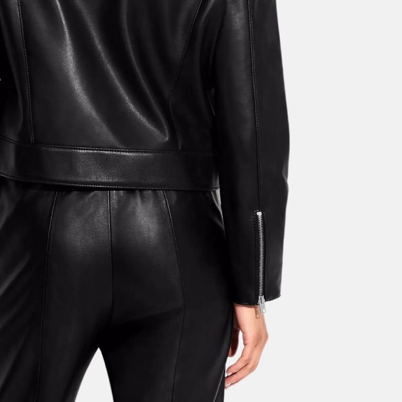 The more time the jacket spends on a hanger, the better it will serve you. From daytime errands to evening social occasions, the Grace Women’s Shirt Collar Black Leather Jacket fits for all – in any season! You can easily wear the jacket with a pair of distressed jeans and boots for a more casual look, or style it with a dress and heels for a night out. The neat jacket collar and streamlined silhouette also mean it can be worn to work, avoiding the casual, typical moto-jacket bulk. This is what makes this jacket so special; it offers multiple styles while keeping a refined look. Choosing this jacket means you value timeless craftsmanship and modern style, making it a versatile staple piece in your wardrobe for years.