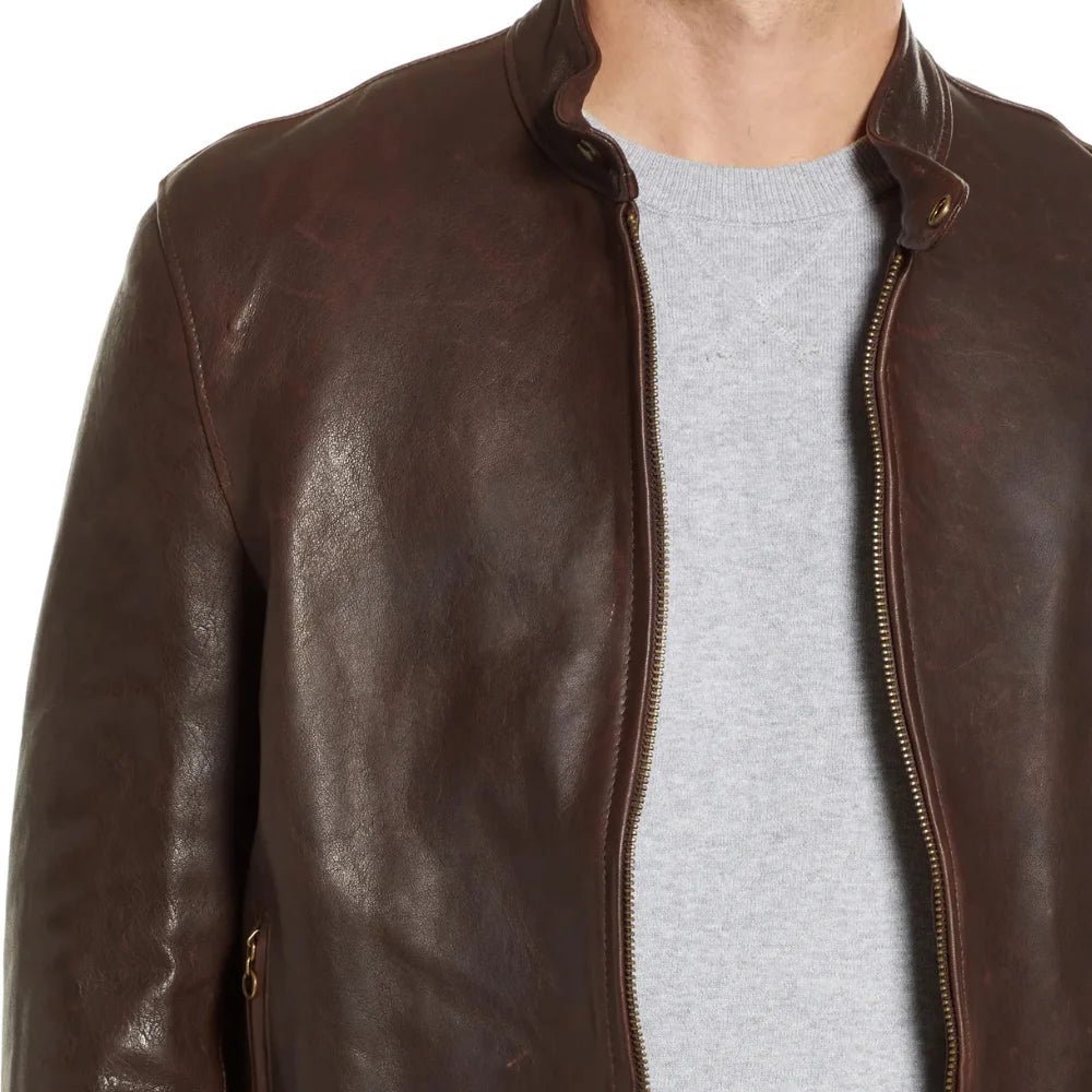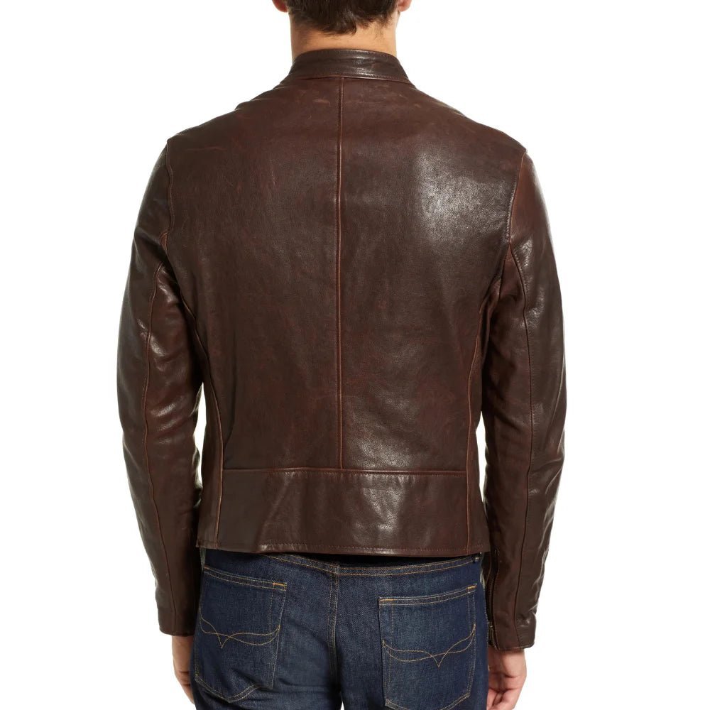 Isla Quinn Chocolate Brown Cafe Racer Leather Jacket For men