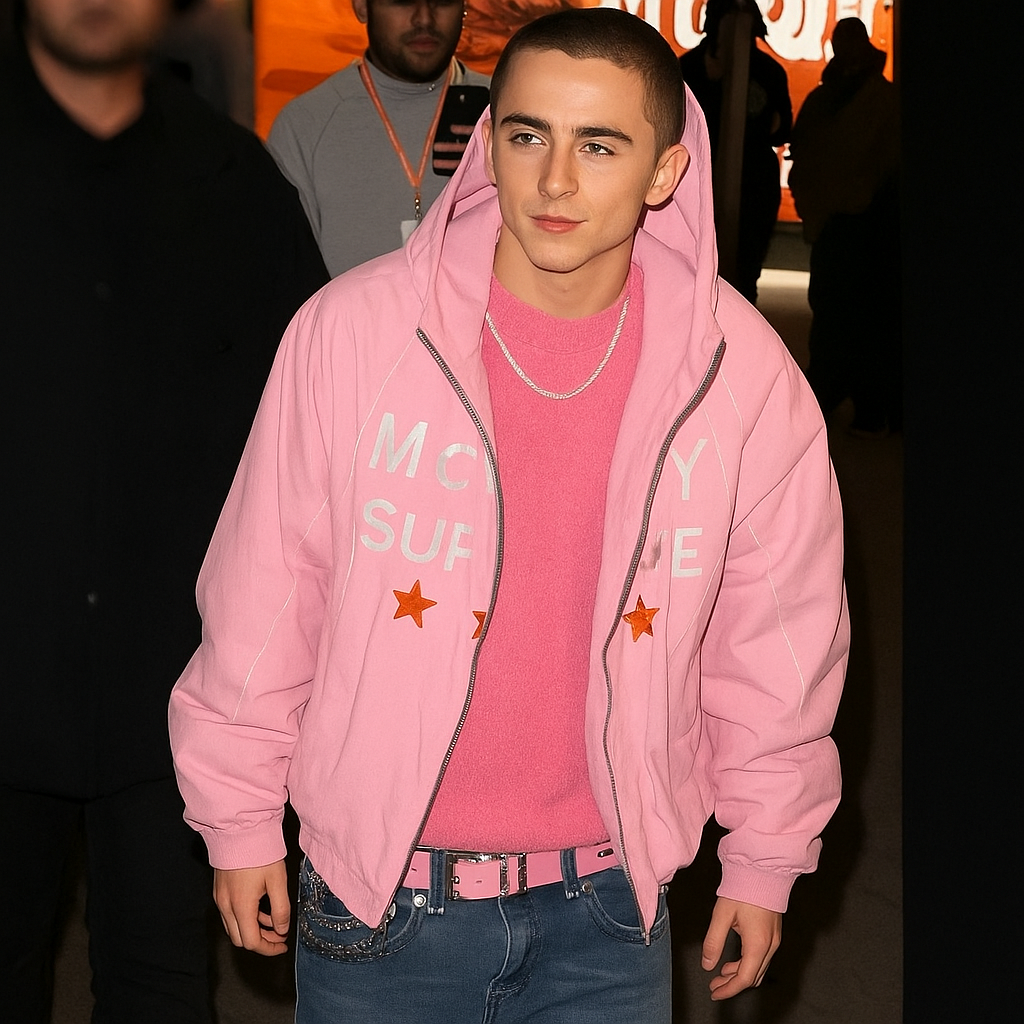The Marty Supreme Timothee Chalamet Pink Jacket is the combination of edgy streetwear. And high fashion confidence merging together flawlessly. The Marty Supreme Timothée Chalamet Pink Jacket is a staple piece of fashion versatility. Serving to elevate minimalist ensembles, and take the focus of the outfit being less is more. Being designed for the style conscious, this jacket also is perfect for a seamless shift from casual daytime to statement evening with ease and undeniable charisma. Its thoughtful attention to detail means the jacket can keep its bold colors and shape structure withstand the elements and elements of fashion. More than just a piece of style for the purpose of outerwear, it is a piece of taste unhidden and bold, and with the jacket a straightforward masculine style. It’s a piece of style where haute cinema and personal stylings create their own absence of trends together.
