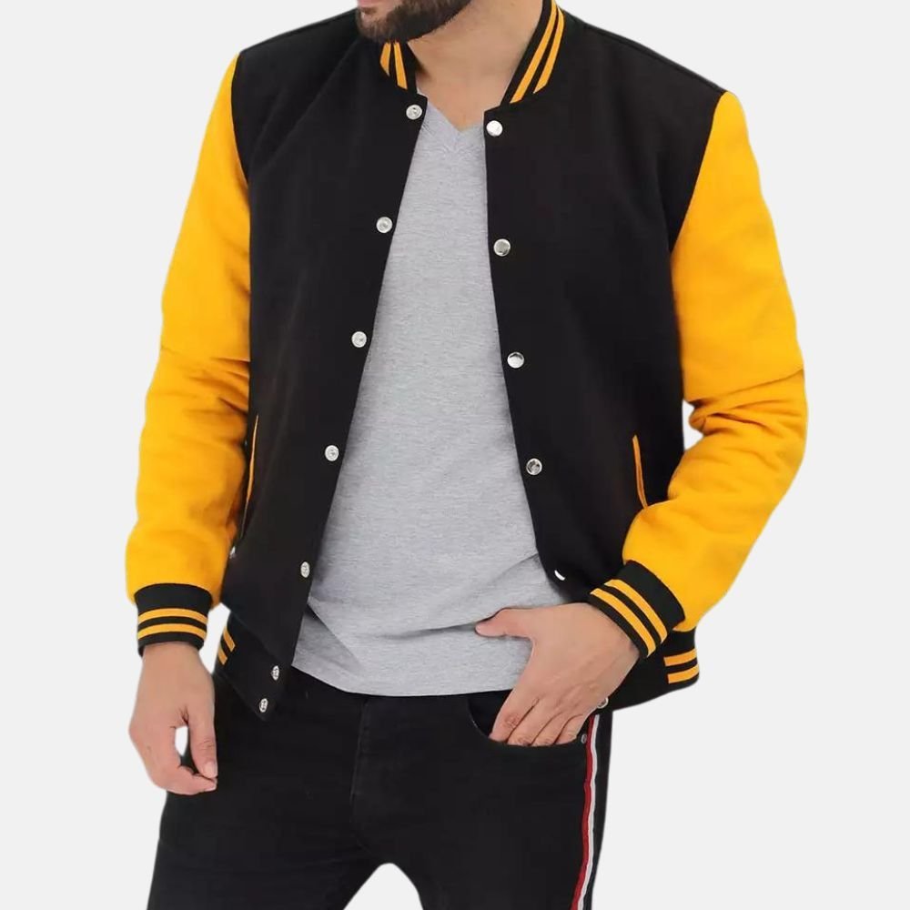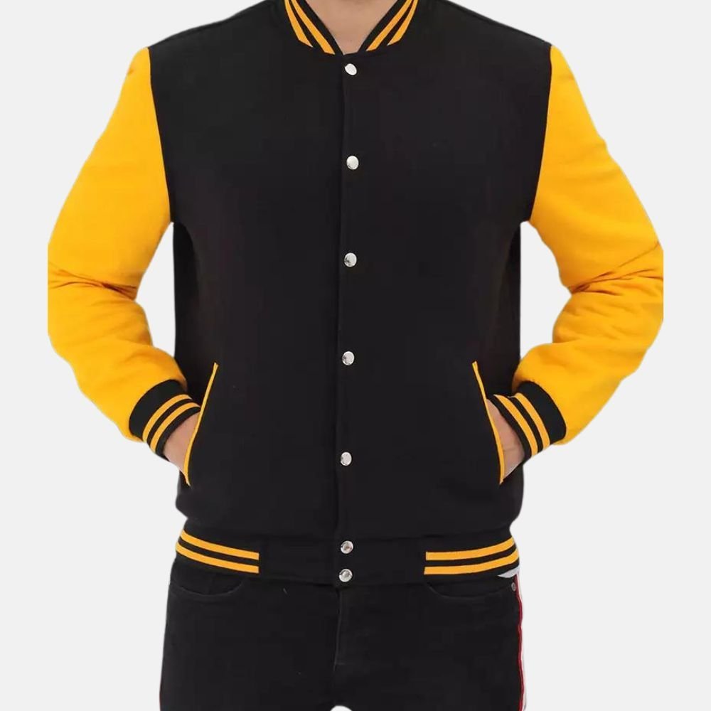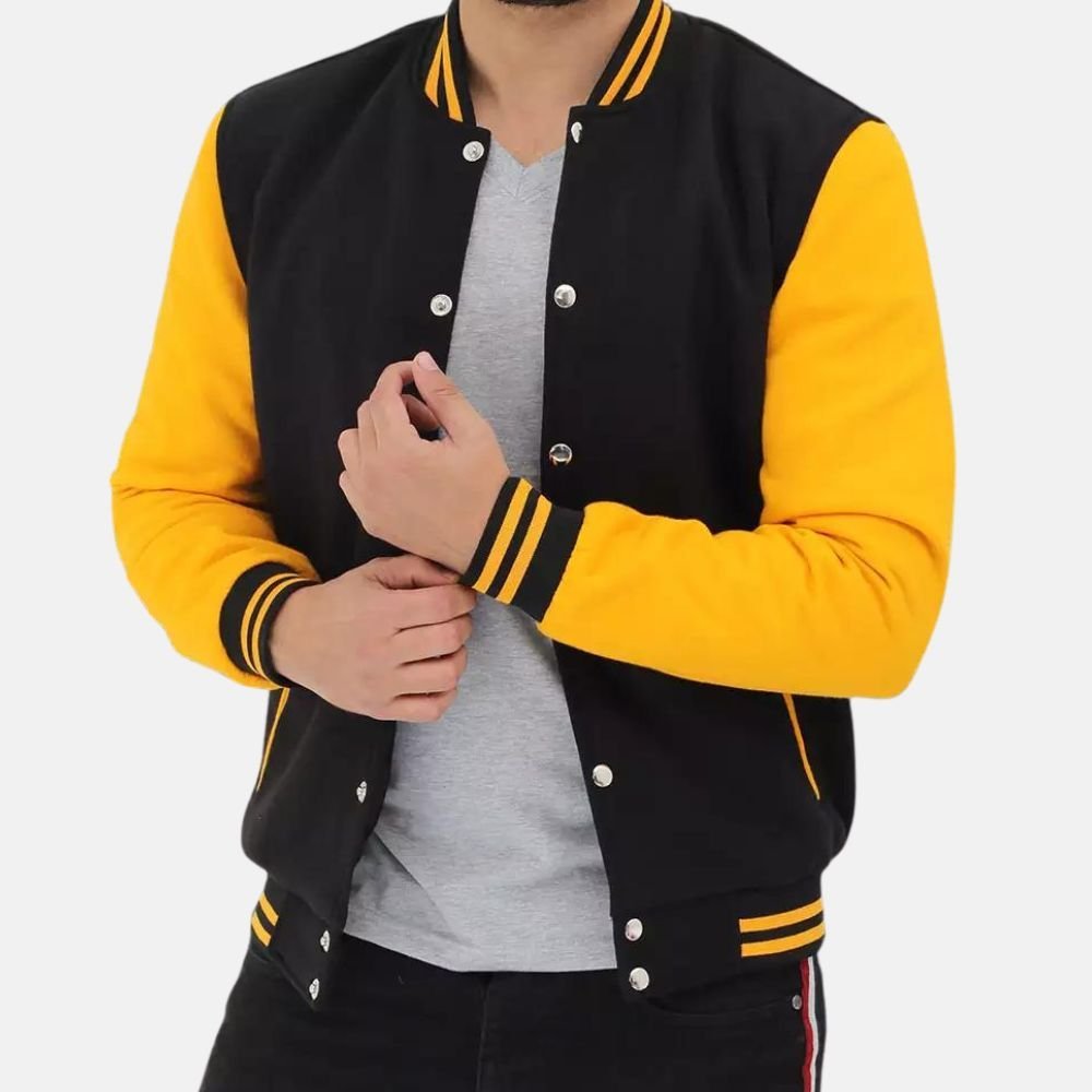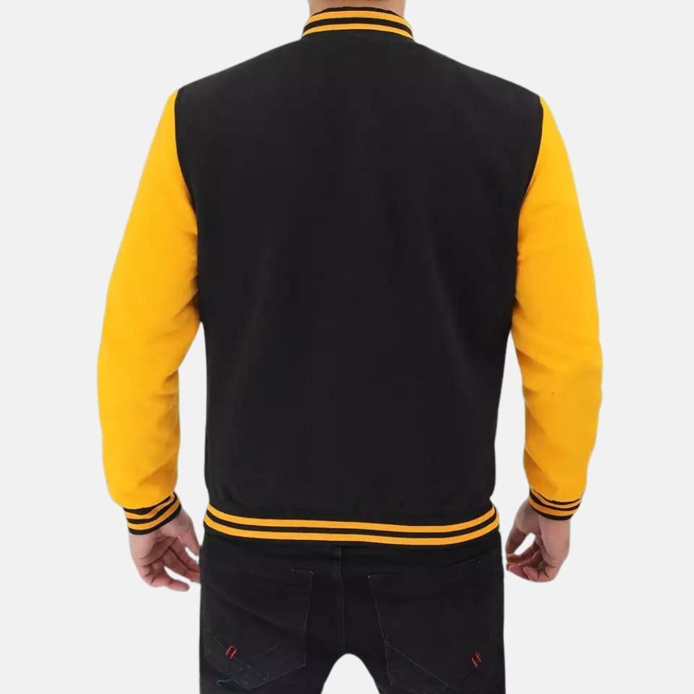 Black and Yellow Baseball Letterman Jacket For Men