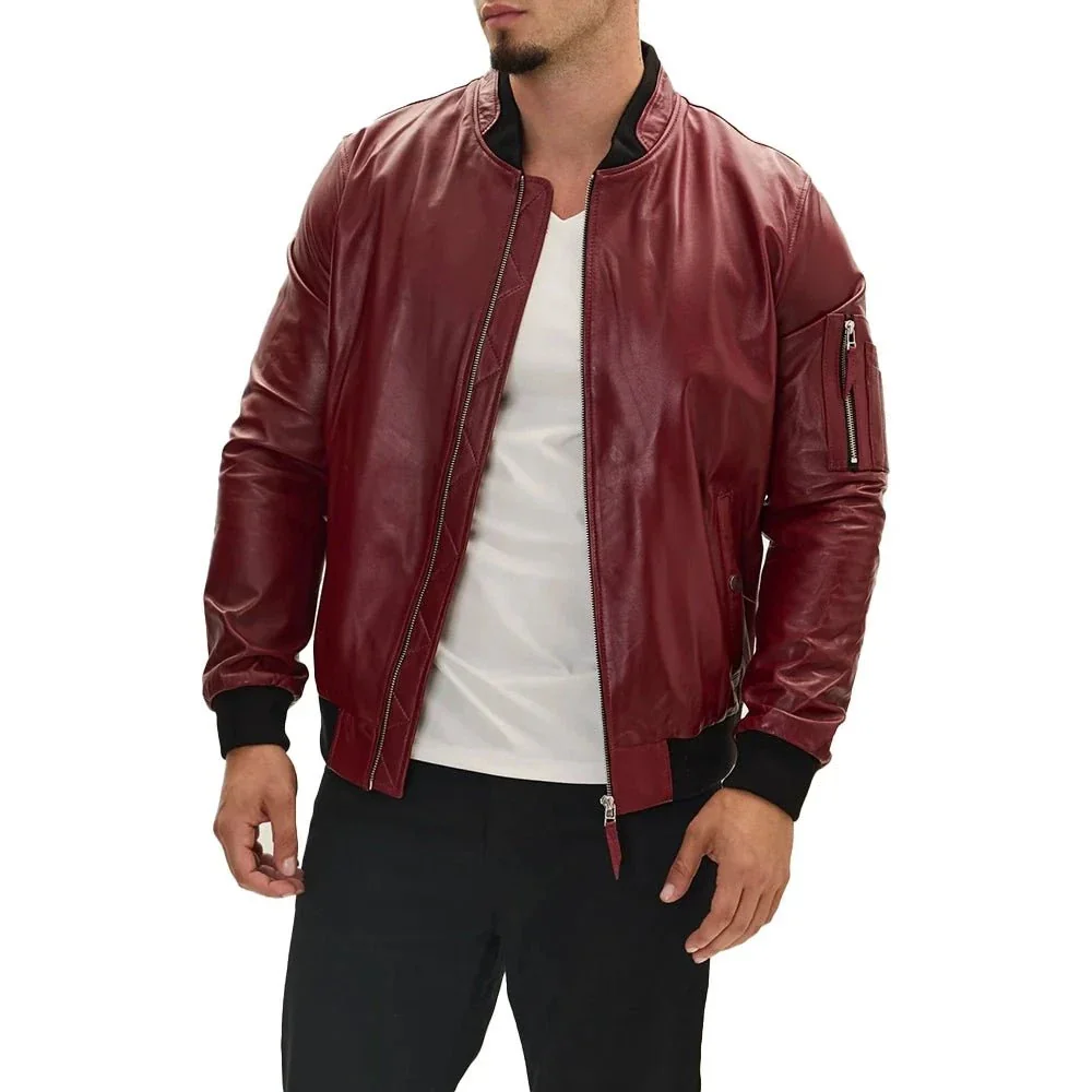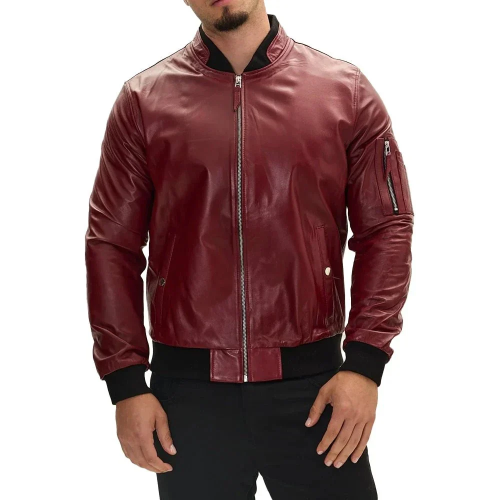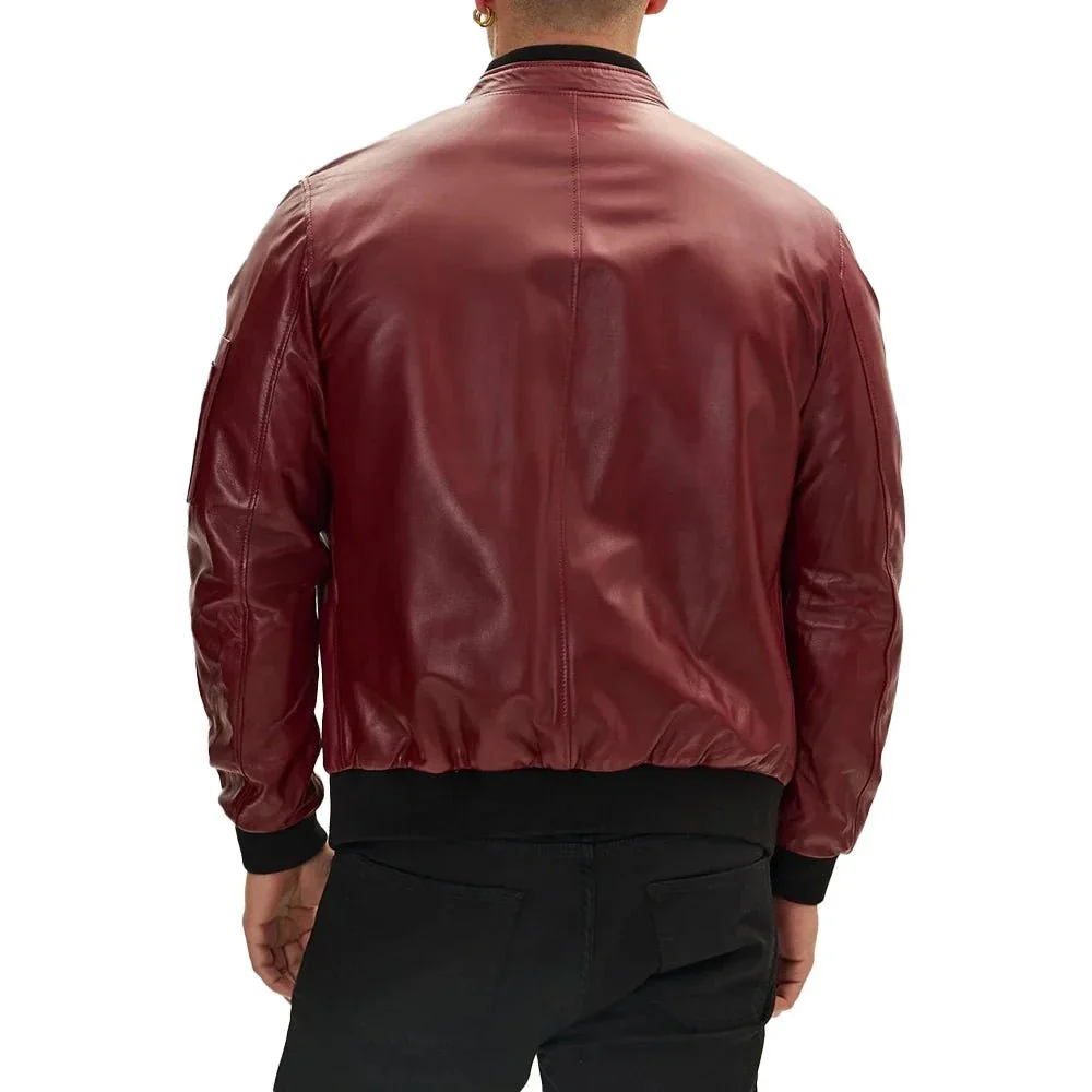 Red Leather Bomber Jacket For Men