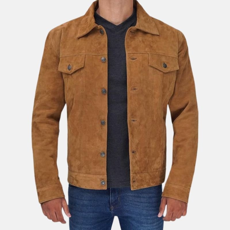 Crafted to stand out and serve a purpose, the Men’s Camel Brown Suede Shirt Jacket has multiple pockets and an inner secure pocket while maintaining a sleek silhouette. The front fastening buttons allow for easy wear while offering an impeccably neat finish. Constructed to allow room for a premium shirt and a jacket on top, the suede shirt jacket is ideal for elegant casual outfits. What men appreciate most is the fact that the jacket blends sophisticated design with contemporary style, making it a versatile piece in their wardrobe. It’s perfect for casual brunches and elegant suede jackets effortlessly blend with dress pants.