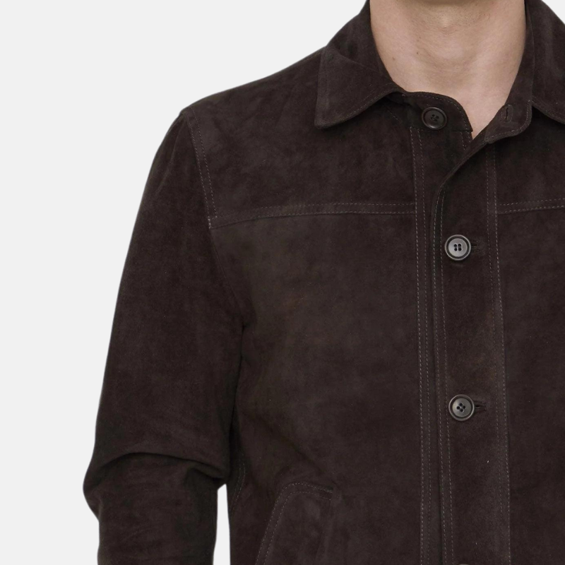 Dark Brown Buttoned Bomber Suede Jacket for Men