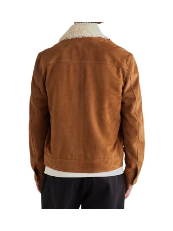 Fur Collar Brown Suede Leather Trucker Jacket for Men
