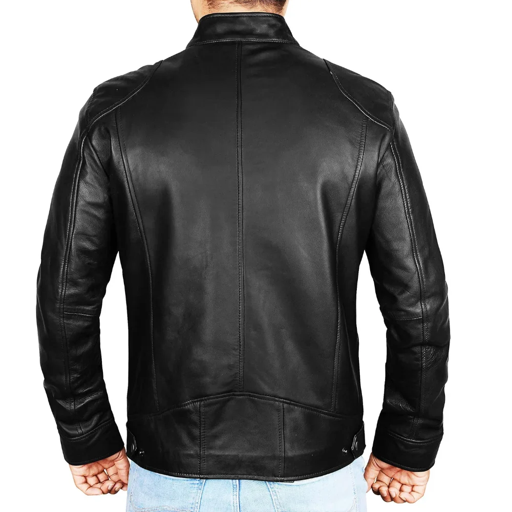Men’s Black Lambskin Leather Cafe Racer Jacket Rugged Style Meets Refined Elegance