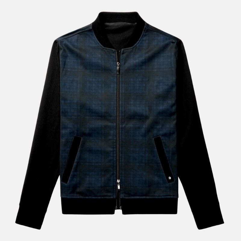 The men’s navy blue zipper bomber jacket combines a sleek sense of style with a modern versatility. Constructed with fine cotton, the bomber jacket is a breathable and warm outer jacket made for cooler seasons. This jacket is completely lined with warm and comfy viscose, keeping your body warm and cozy, while the luxurious viscose lining allows the body to move freely and snug with the cotton in the jacket. The bomber jacket’s dark blue color is contemporary enough to match with smart casual and casual bottom pieces. This men’s cotton bomber jacket is versatile and can be worn with tailored trousers for the office or dressed down with denim for the weekend.