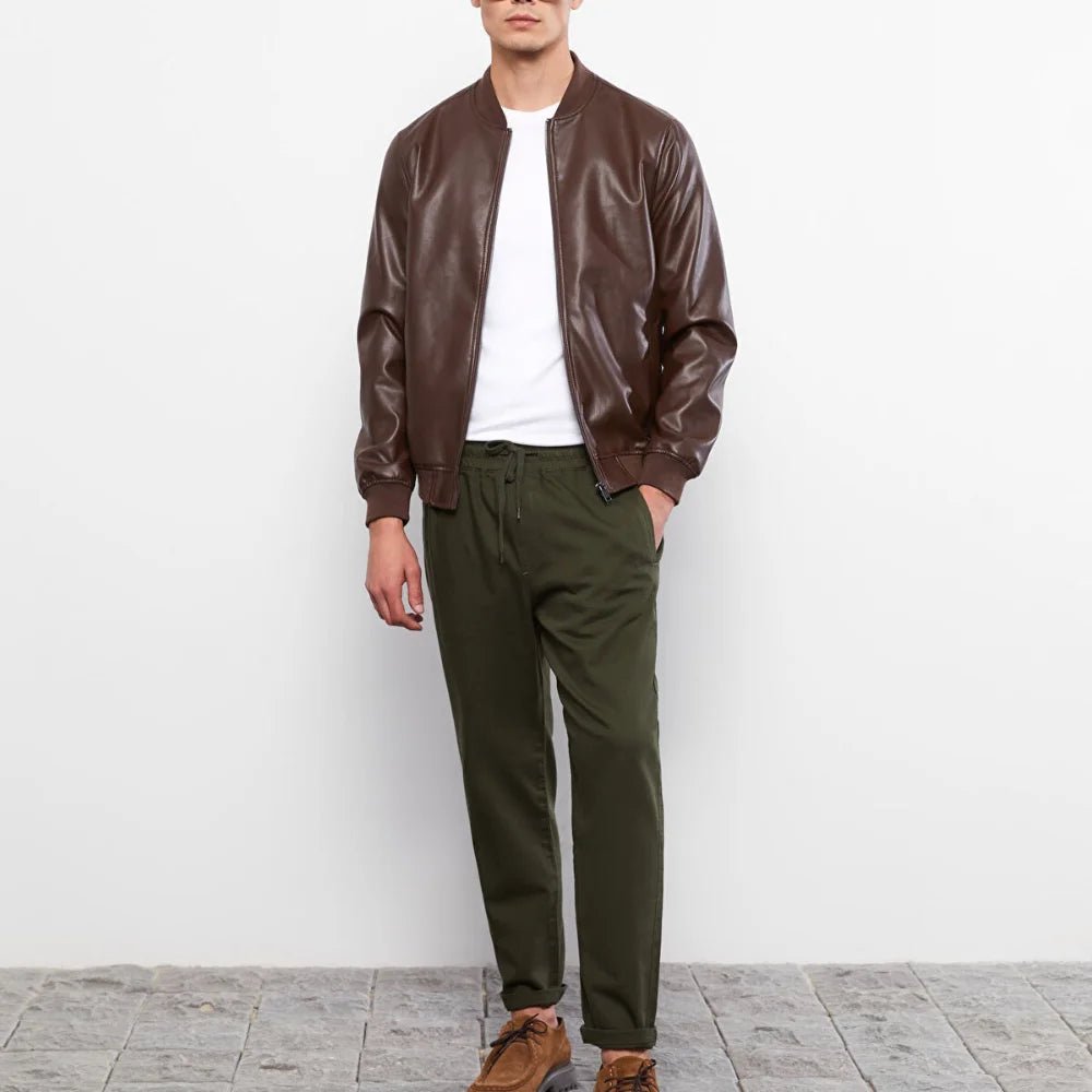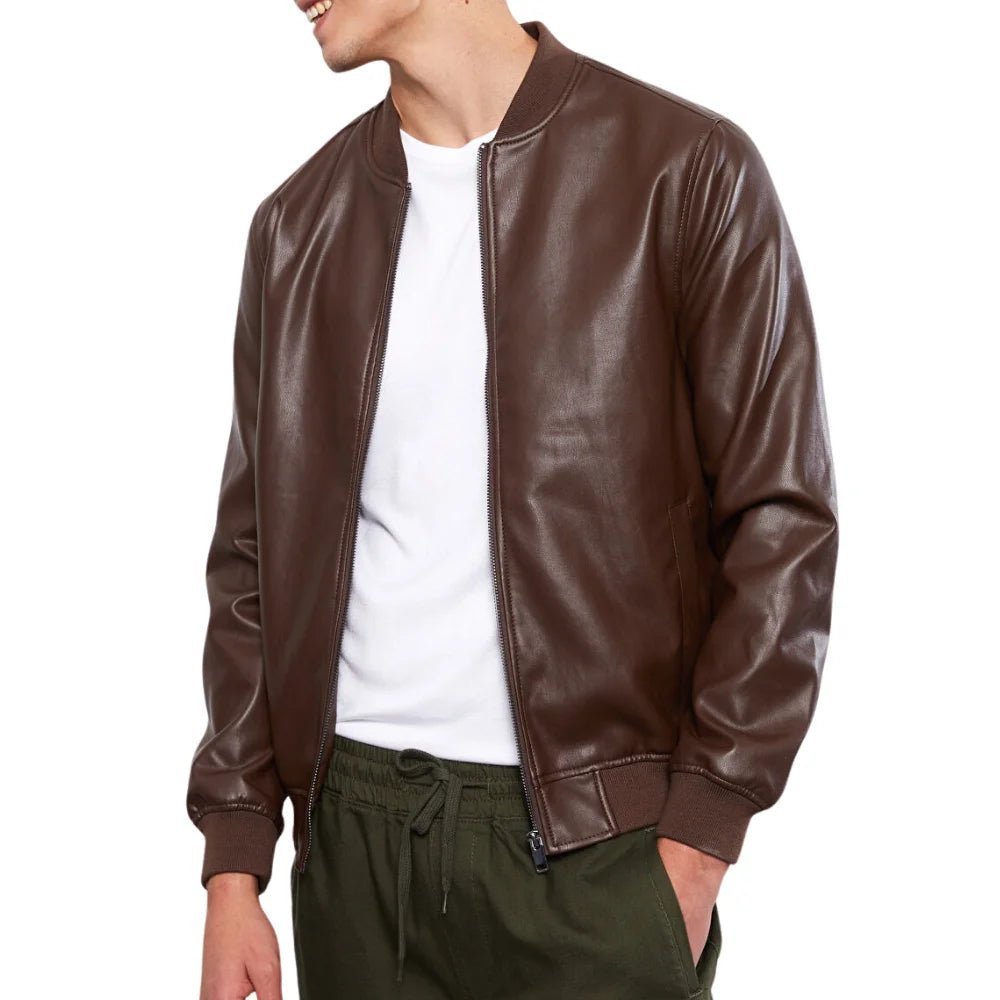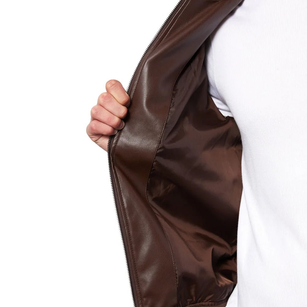 The design includes two front pockets and an inner pocket that harmonizes practicality and style. The flexible design provides all-day comfort and ease. Its positioned design provides a polished appearance. The Men’s Chocolate Brown Leather Bomber Jacket is excellent for layering over a shirt, T-shirt, or sweater as it complements jeans, chinos, or casual trousers seamlessly. This jacket combines excellent quality, adaptable style, and functional design. It is recommended for men who appreciate outerwear with a seamless combination of elegance, comfort, and strength. This leather bomber jacket offers a sophisticated, enduring style appropriate for any casual or evening occasion.