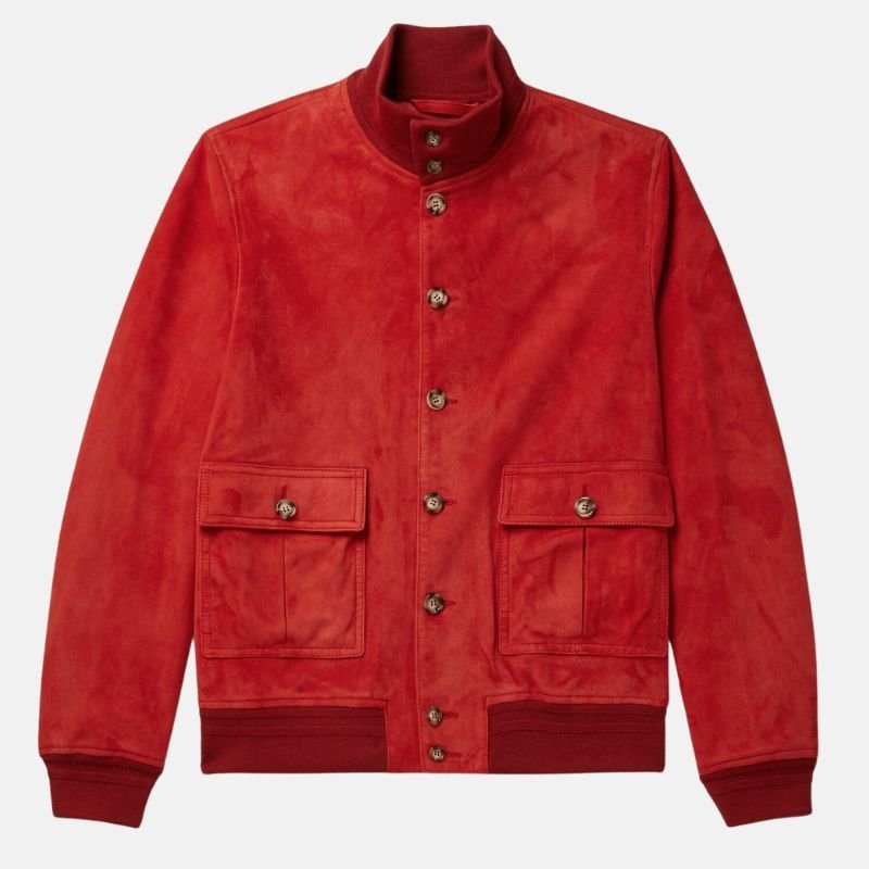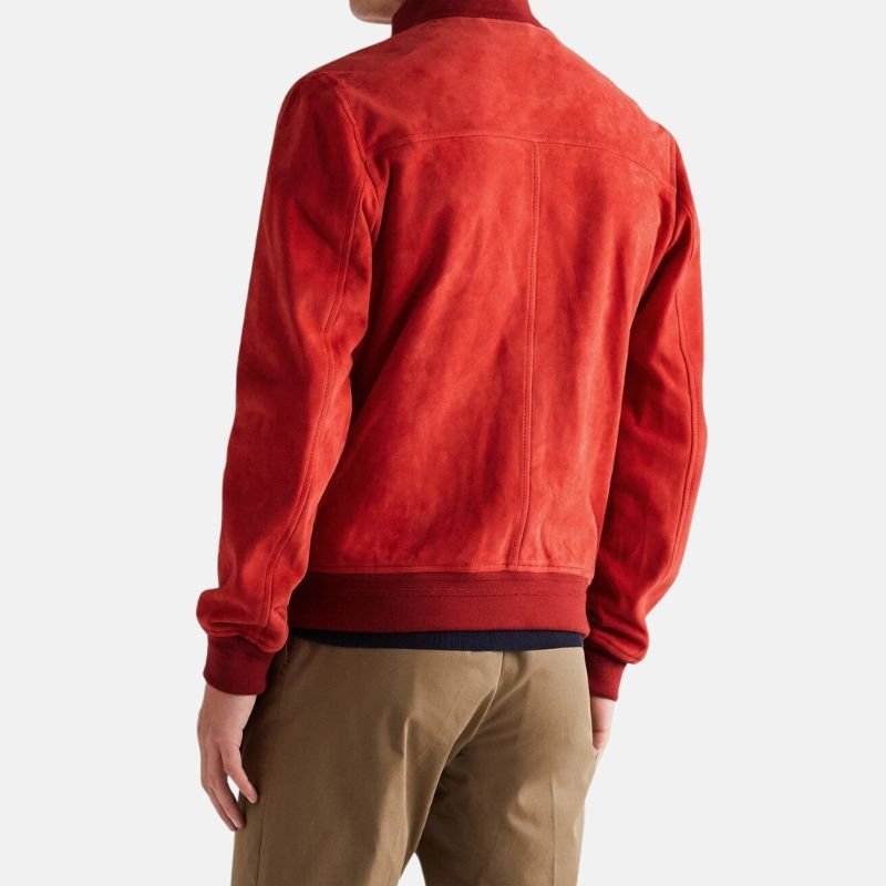 Red Suede Bomber Jacket for Men
