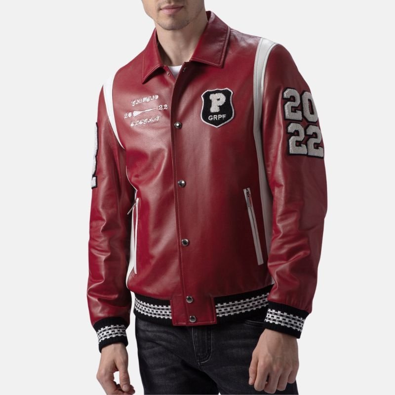 Enhance your wardrobe with this Men’s Red Leather Varsity Jacket made with luxe lambskin leather. For a piece that will last a lifetime, lambskin offers a buttery, smooth feel. The viscose lining promises comfort over a long period, inner linings feel great against your body. A timeless look with modern features, the jersey doctor’s collar, rib cuffs and hem, and button front closure modernize the classic look. A varsity jacket is a classic sporty attire so you can pair this jacket with your relaxed weekend attire for a casual meet up or a date, it will finish your outfit with confidence and style while you embrace the city while it gets dark.