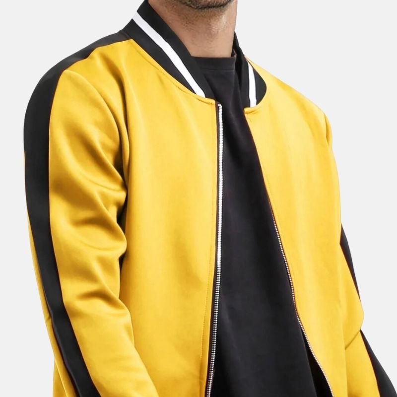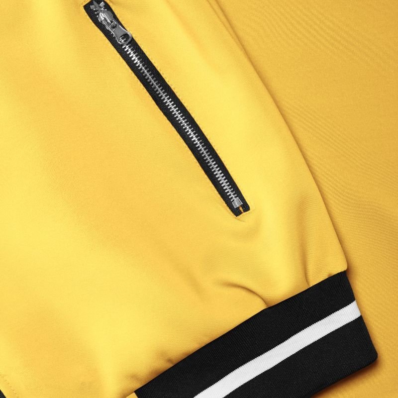 Combining everyday use and skin friendly material while adding a touch of flair. You can whip it off and on in a flash with a zipper closure at the front. Rib-knitted cuffs and banded waists keep the right amount of warmth in so you won’t have to worry about losing the heat. You will feel at ease having the essential safe in the two side zipper pockets, while the extra pocket will keep the valuables hidden. Elevating your wardrobe in style, the Men’s Yellow Zipper Bomber Jacket can be worn with a flow of your everyday casual pants, chinos or jeans. This jacket is for gaining the admiration of your peers while having a walk.