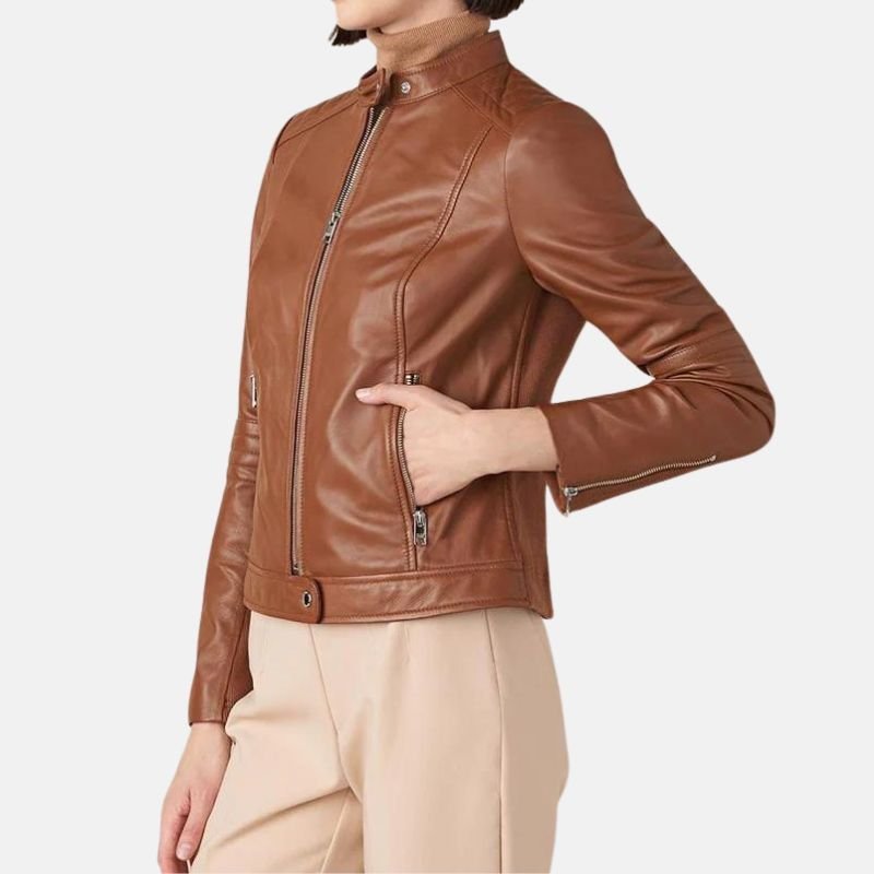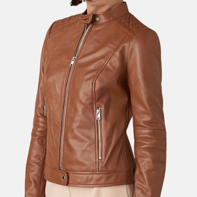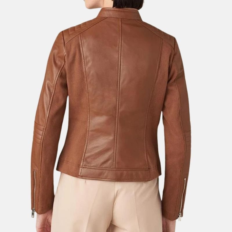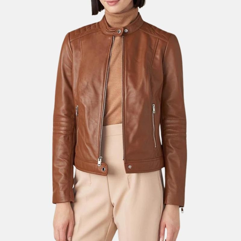 Natalie Casual Brown Slim Fit Leather Jacket For Women.
