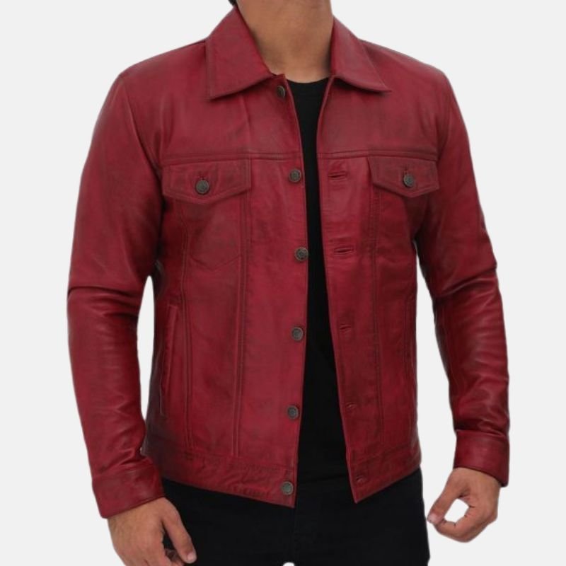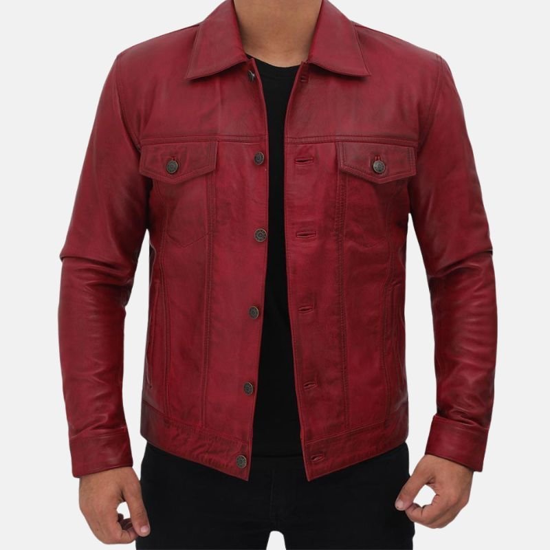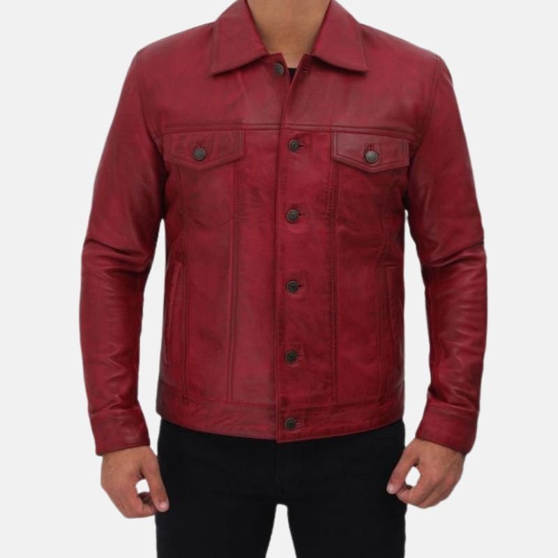 Noah Red Vintage Style Plain Leather Jacket For Men
