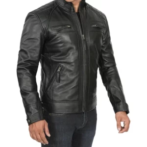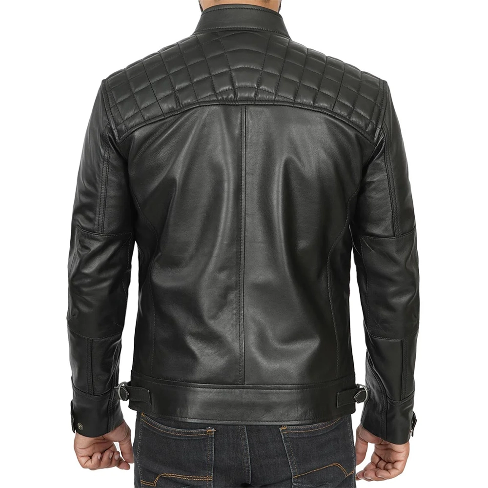 Oliver Quilted Black Cafe Racer Leather Jacket For Men