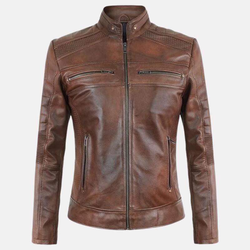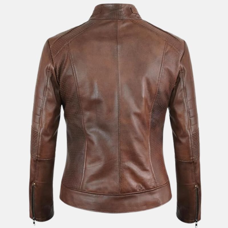 Scarlett Brown Cafe Racer Leather Jacket For Women.