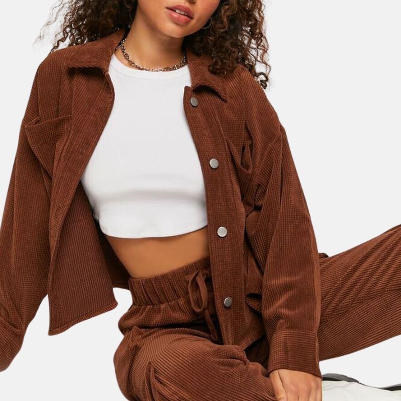 Upgrade your closet by getting yourself the Women’s Brown Suede Corduroy Shirt Jacket. It is one of the most stylish, comfy, and warm jackets around. All of the jackets are made from 100% cotton corduroy, and hence extremely warm, durable, and soft to the hand. The rich color of this suede brown jacket is an elegant addition to your closet, and is versatile to be worn with casual and semi-formal attires. The jacket is fully sherpa-lined, with warm padded taffeta sleeves, gently taffeta-lined sleeve, to ensure you are warm, relaxed, and comfy all day long. This jacket is perfect to be layered over a top, a sweater, or a dress, and is closed with a gentle taffeta-lined sleeve.