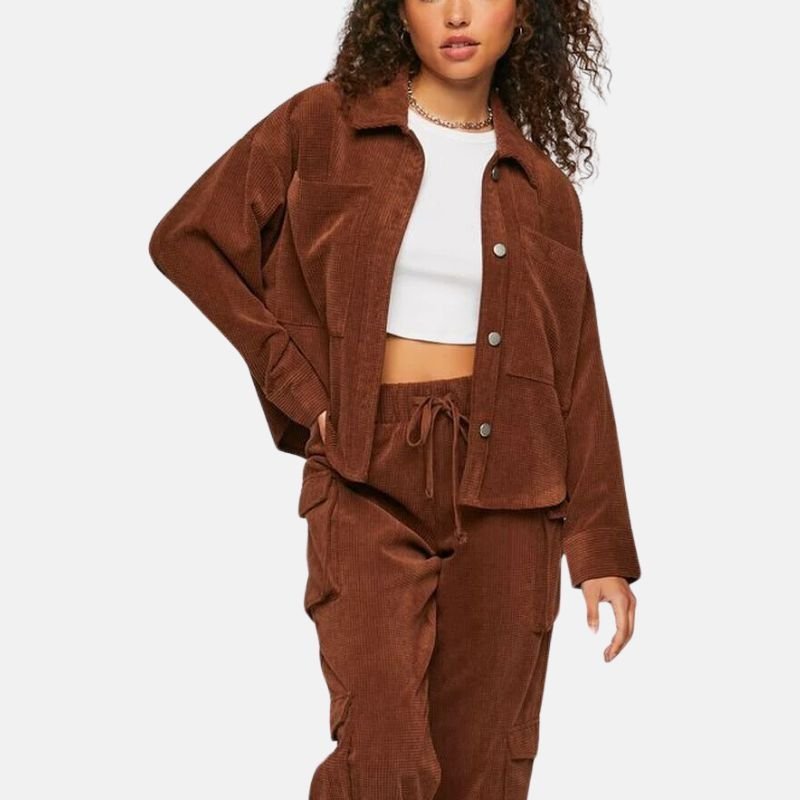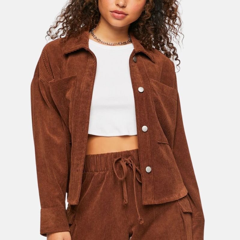 Functionality with style comes with having two chest patch pockets with button flaps and two side pockets for easy storage while keeping it classy. The structure of the piece remains relaxed making it easy to wear under multiple garments while still looking polished. The Women’s Brown Suede Corduroy Shirt Jacket is ideal for all occasions, serving walks, friend meet ups, and even works as a fashionable top layer for every day. This piece of clothing combines the warm and cozy feeling of dual sided sherpa with the classy suede brown coloring, and is a design easy to manipulate for every woman in the fast paced world as it becomes one of the layered staples for pieces to work with sophistication and style.