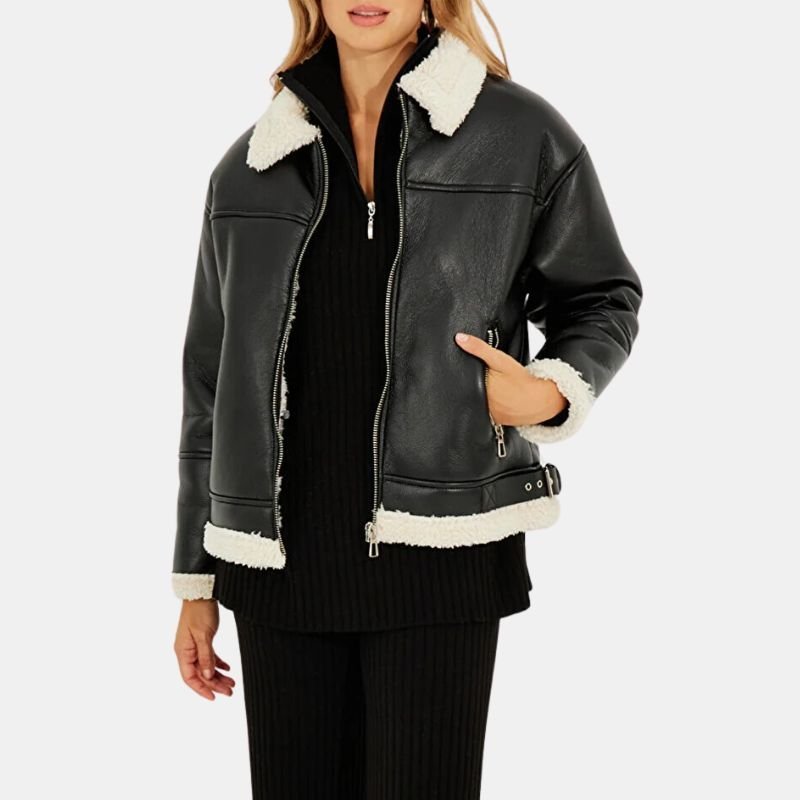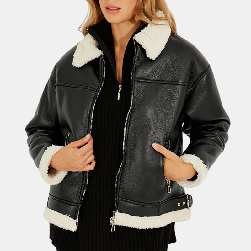 The jacket is also crafted with an approach that embraces precision which is evinced in the described silhouette and detail. The jacket is also described as simple and uncomplicated in respect of care, the survivor of several touch and wipe. The Women’s RAF Aviator Flying Pilot Black Leather Jacket is leather and premium shearling. The jacket described as ending with an oppressive weight.