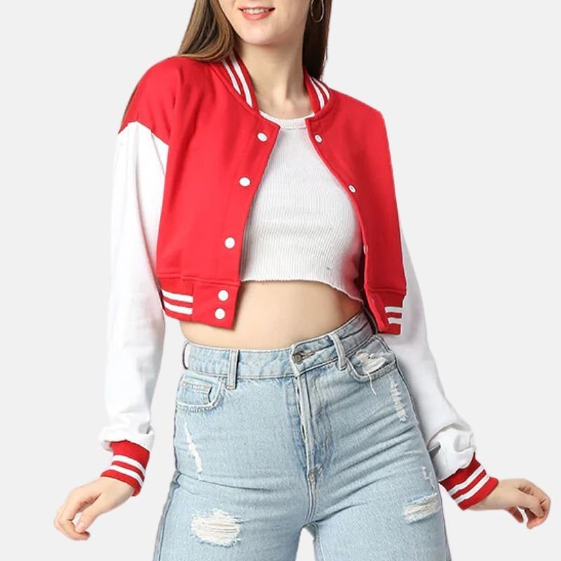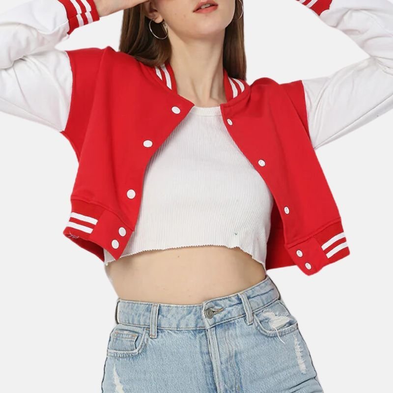Women’s Red Cropped Varsity Jacket