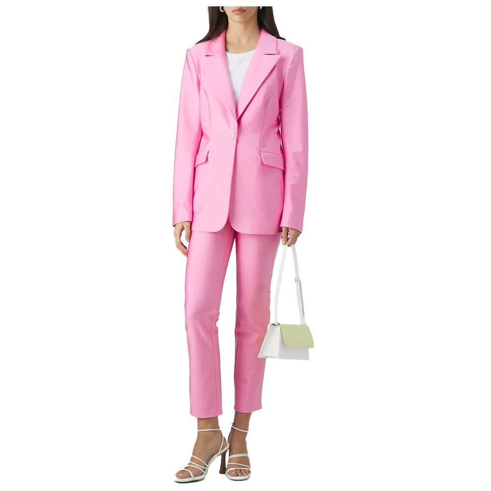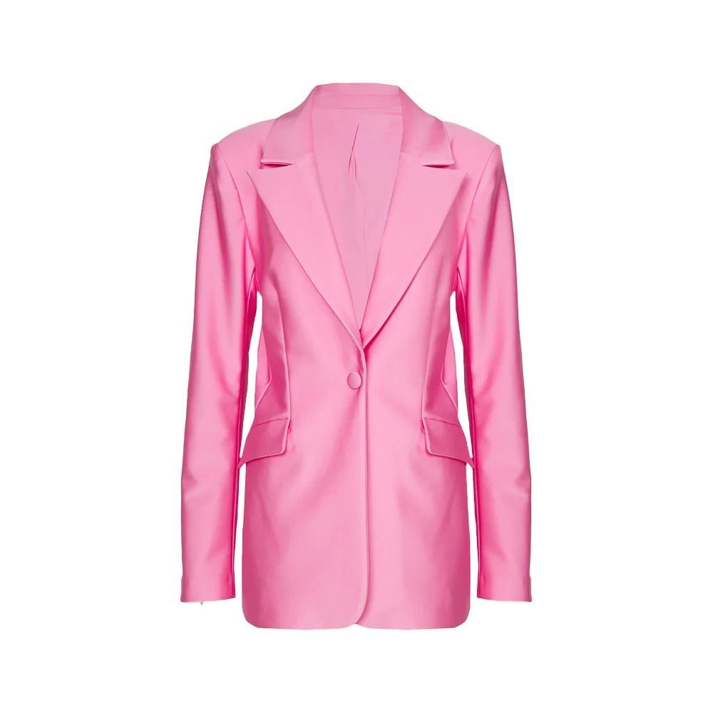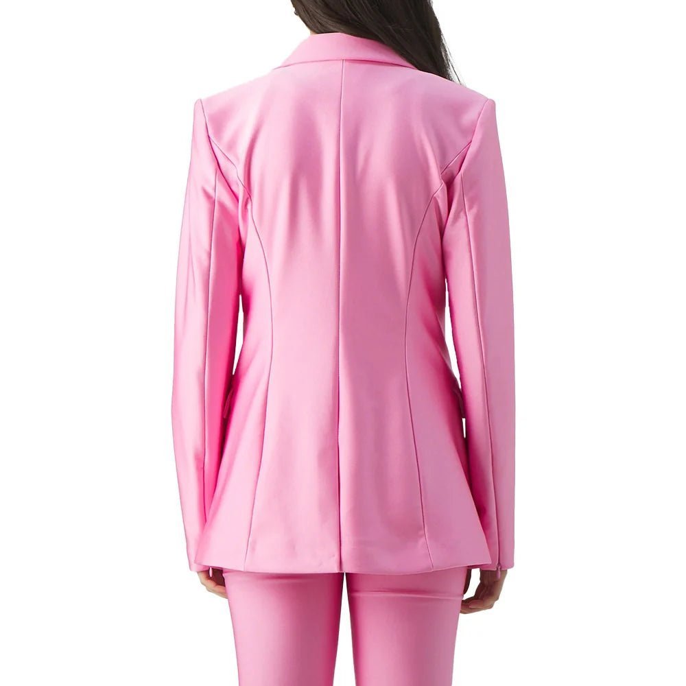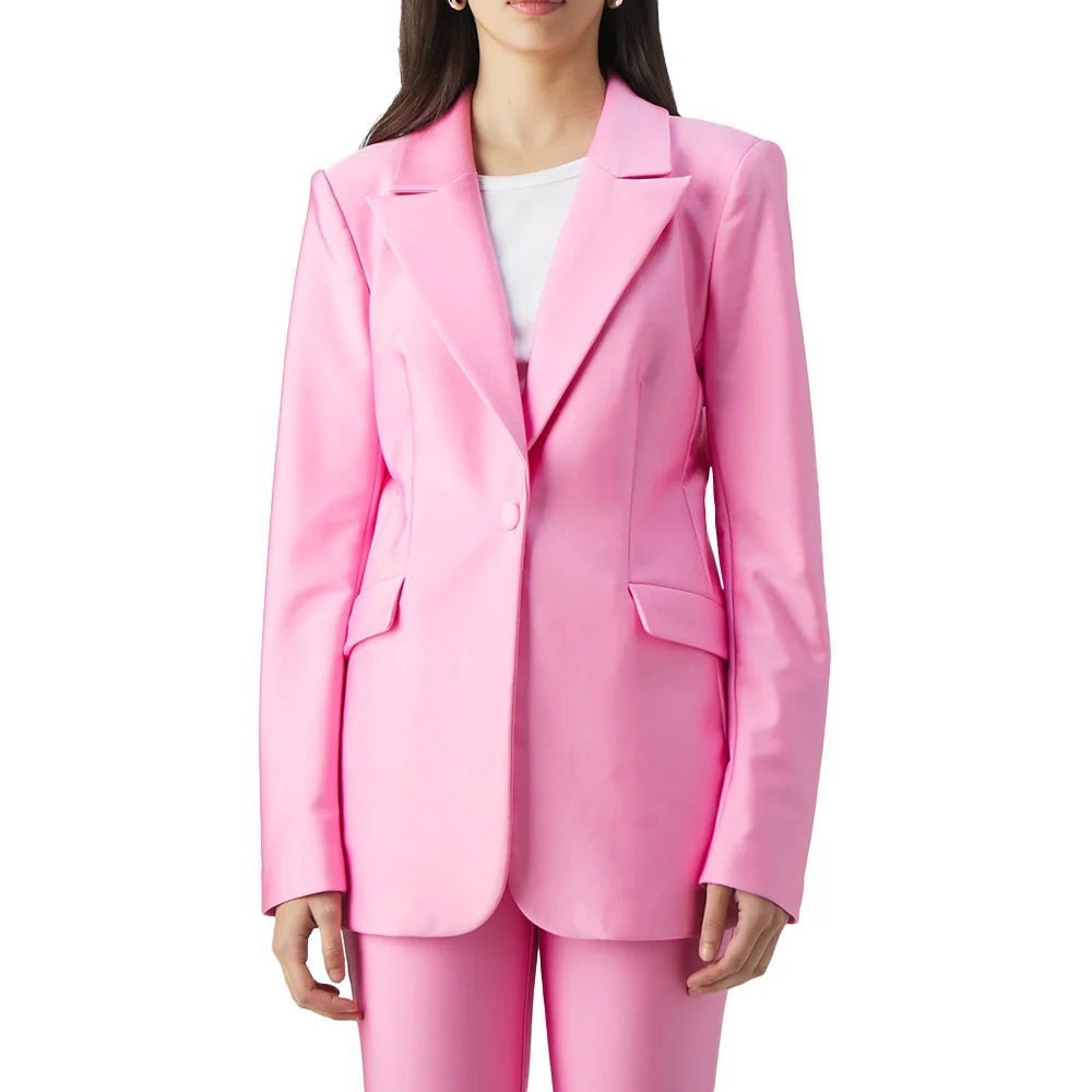 Bold Hot Pink Women’s Single-Breasted Leather Blazer with Notch Lapel