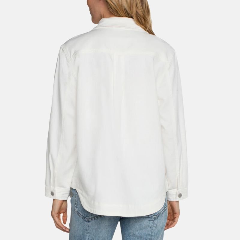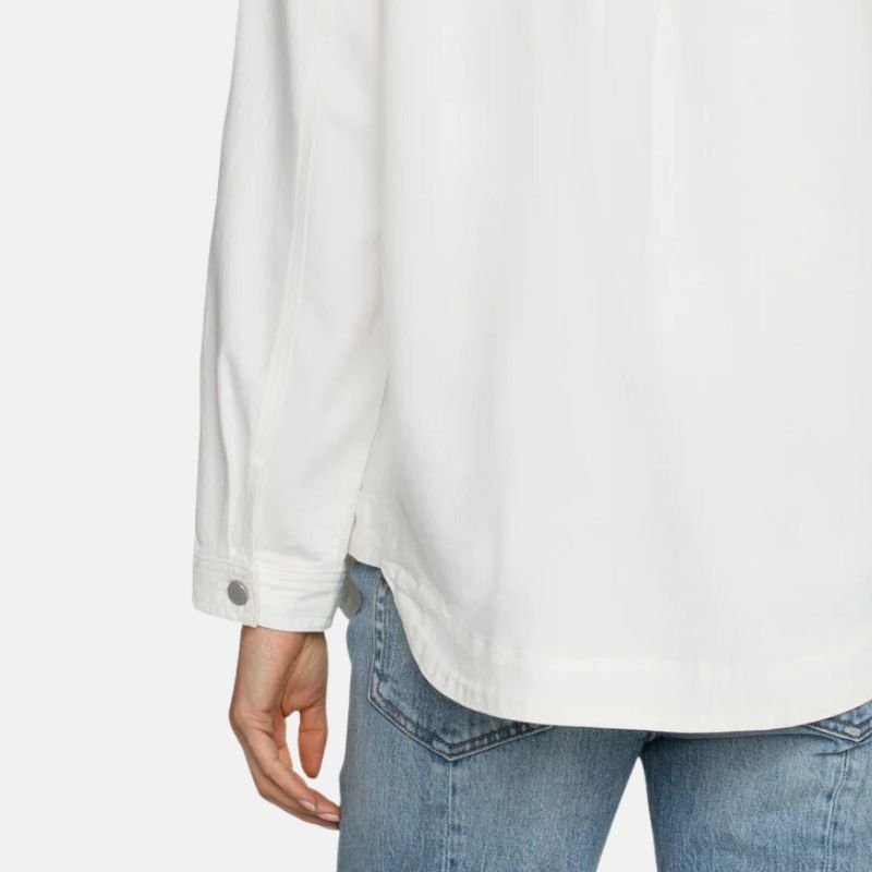 This jacket showcases a neat design along with considerate features: sleeves that can be rolled for a relaxed feel and secured with buttons, and side pockets for easy access without disrupting the design. Thought went into the crafting of this shirt jacket, and the tailored and relaxed fit equally consider the comfort of the wearer. This piece serves you versatility, as it acts as a classic shirt and lightweight outerwear. I recommend a more relaxed fit for the jacket to free your range of motion. The design and utility of this white cotton shirt jacket improves your layering.
